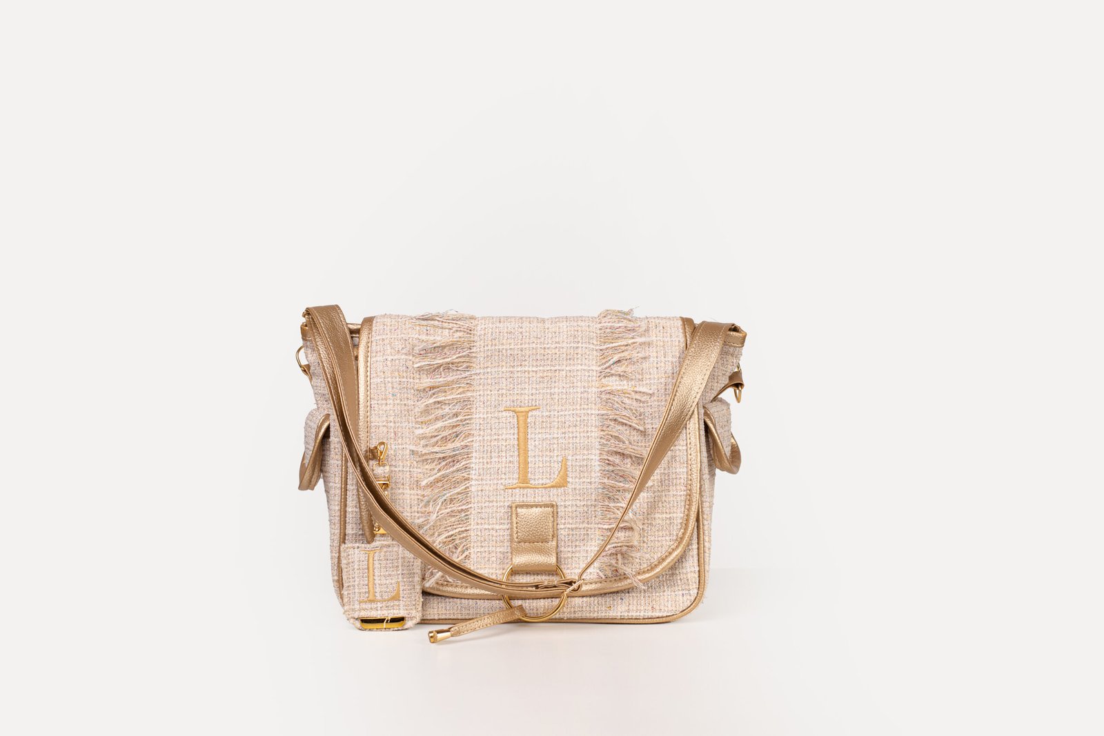 • Zíperes e metais: Dourados, trazendo um toque de sofisticação.